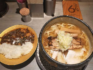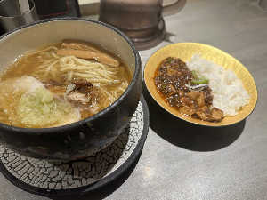貝の出汁が効いた旨味溢れるスープに破壊力抜群の厚切りチャーシュー 麻婆丼も美味