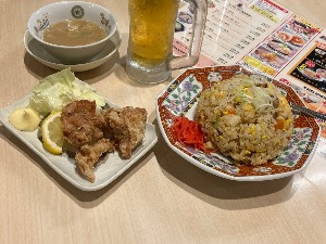 やっぱりここのチャーハンは美味しいなぁ💕💕 唐揚げは初めて注文したけど、これまたジューシー👍✨