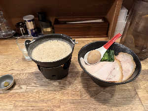 濃厚なつけ汁が美味い。ずっと暖かくたべれるのも嬉しい