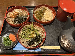 トッピングは選べます。 今回のチョイスは、わさび茎、山菜、あげ半