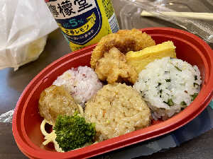 夜遅く店が見つからず時間の関係もありコンビニで買ったものを休憩所で、サ飯と呼んでいいのかは謎