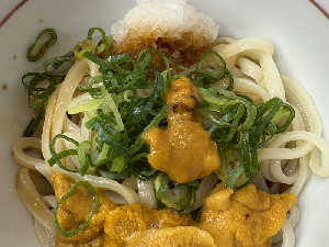 冷え冷えのうどんと大根おろしにウマウマな雲丹がのって、〆の紅しょうがもサウナ後に最高においしかったな