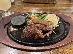 友人の厚厚カットステーキとハーフ&ハーフでフードファイト