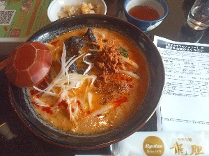 味噌担々麺とサービス餃子