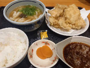 とり天は塩と天つゆの味変であっという間に完食。ミニうどんもついて満足の大金星。