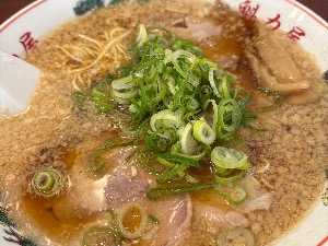 背脂系ですが、醤油味であっさり。ネギシャキシャキで美味しいどすえ。