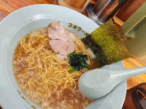 大盛 初朝ラーメンショップ椿 駐車場満杯でも回転早くてすぐ入れられた 麺は細ストレート炒めネギうま