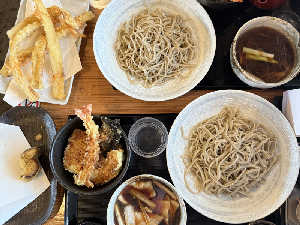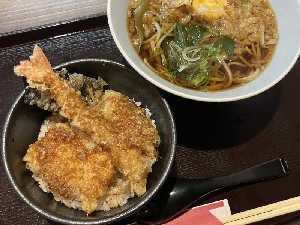 相方は鴨ごぼうつけそばと小天丼😋 単品でさつまいもとごぼう天を頼んだけど完食しました👍