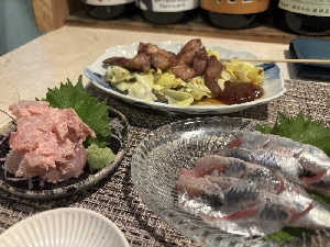茄子の煮浸し、真鯵刺し、どんこ肝あえ、そして秋刀魚塩焼き。やっぱり日本は最高だ!