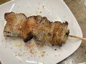 塩コショウの効いた豚バラに 一味唐辛子をかけて食べる これが良き