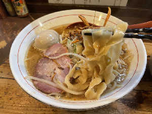 自家製幅広平打ちウェーブ麺がこだわりさっぱり濃厚味噌で美味あげごぼうとごぼう油が味噌