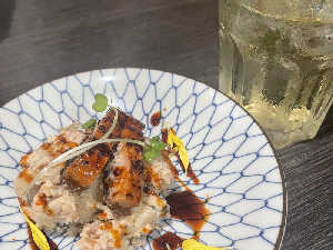 ハイボールと鰻のせ燻製ポテサラ