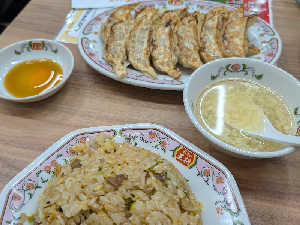 日本昔ばなしみたいな山盛り白ご飯。おなかぱんちくりん。餃子美味しかったー!