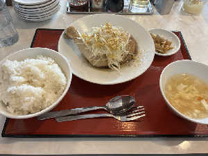 名前が長い。鶏肉はケンタッキーばりの骨付きチキンだった。生姜が効いててサッパリ系でした。うまし。