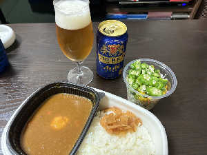オクラサラダ美味しい😋 カレー食べてまたもや滝汗に😅