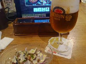 カツオ好きなので今月のおすすめ食材がカツオなのが嬉しい😃一番搾りおかわりしちゃった。うま!