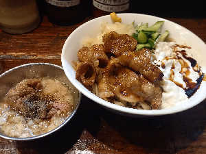 麺が無いのに山盛りで出てきます。ご飯少なめでと伝えたら200gで出てきました。500gまで無料です。