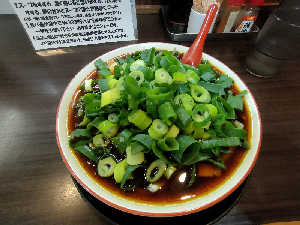 東大阪のご当地ラーメン。ザク切りネギがドーン!醤油が濃い!麺を食べ終わった後の、染みたネギがご褒美😋