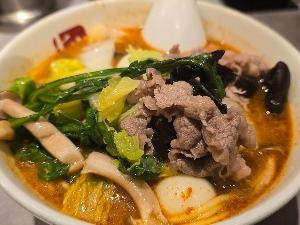 基本はスープと春雨のみで、具材を自分で選んでグラムで加算される。写真の感じで1,200円位だた。