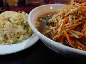 半チャーハンとは…? ニンニクガッツリきいてました〜 これで800円は経営的に大丈夫なのかしら…?