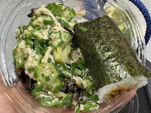 お箸もらい忘れて、納豆巻きでネバネバのサラダをすくいながら食べる🥲‥
