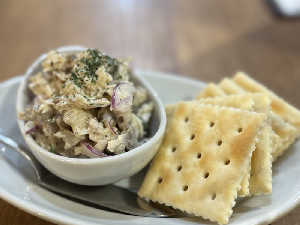 サウナ終わりのビール。一品は鰤のカナッペ,ビールと合う。