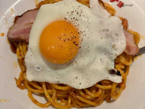ナポリタン🍝メガ(600g)に王道セット(目玉焼き🍳と厚切りベーコン🥓)