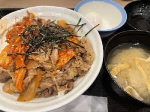 前回はまつのやに浮気🙏 キムチ牛めし、俺はお前を離さない❤️ (盛り付け適当でも)