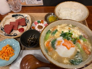具沢山の沖縄のみそ汁、ウマー! 朝サウナあとに沁みるー😋