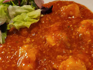 プリっプリの大きな海老と滑らかでガーリックの効いたチリソース😋