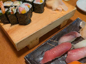 お酒1杯+中トロ3カン¥600のフェア開催中。(サーモンに変更可能)