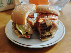 パティ5枚のあれ。美味いけどこれならワッパー4つの方が良いんじゃなかろうか。