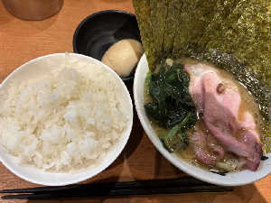 六角家系。酒井製麺使用。チャーシューが燻製味で旨い。やはり家系はライス+海苔トッピングだなぁ。
