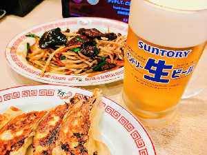 4個 ¥380- 標準的な大きさに見えるw だか、サウナ後のビール&餃子は嬉しい