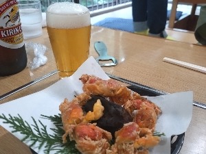 🦀の捕獲法。夜に仕掛けで取るんやと🐼言うてる。私は、網で追いかけ回すと言うてる。
