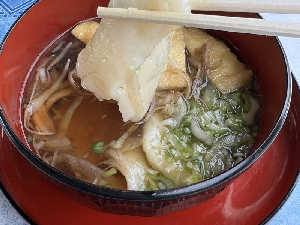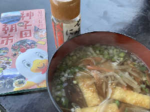 朝から優しいスープ☺️薬味たっぷり。注文するとひっつみをちぎって茹でてくれる