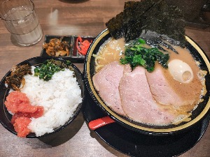 久米店開店で無限明太子ライス。 めっちゃ混みで待ちだったけど明太子で元取った😀ラーメンは普通かな。