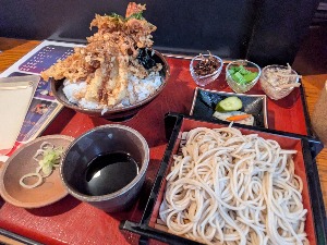 祝復活!蕎麦も天丼の米の硬さ加減、天ぷらの揚げ方、汁のうまさ、文句なし。美味すぎて笑顔になる。
