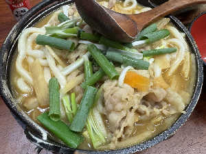 甘めの出汁に、カレーの風味、具沢山で美味しい🤤