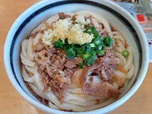 肉うどんはやっぱり岡製麺所! 甘辛くておいひい。