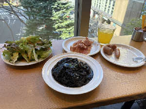 生ハム、ローストビーフおかわりし放題。サラダバー、ドリンクバーも。