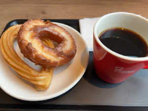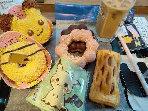駅までの通りのミスドで甘いものを補給しました。 期間限定の祇園辻利の黒蜜のやつです。美味でした。