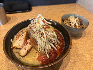 しっかり濃いやや甘めの味噌スープに生姜の風味でサウナ後に染みる 麺もつるもちで美味い