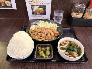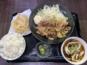 生姜焼き最高です、何よりうどんが美味しい。 どっちも食べたかったのでこんな感じに🍚