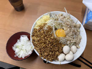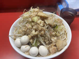 麺やわめ、アブラ、ニンニク少なめ、普通。 久しぶりの二郎キツいわ。