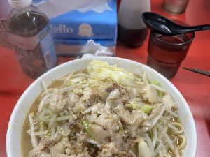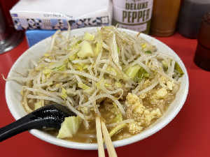 全国でも数少ないインスパイアではない本家の二郎の1つ ど乳化スープが特徴です 行列でも回転は早いです