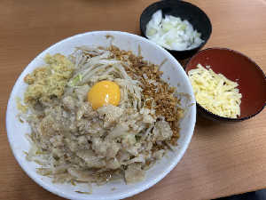 枠外に生卵とチーズも。乳化系や!バランスの取れた素晴らしい一杯!チーズは余計だったw