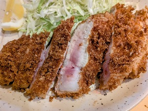 分厚いロースカツに店舗オリジナル甘めのソースが合います。