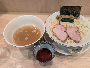 つけ麺の他にそばつゆがある珍しい形態。 ダシが力強い感じで洗練されながらパンチがあり美味しい。