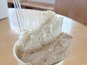 近くのかわいいジェラート屋さん🍨ヨーグルトはちょっと薄め、ラムレーズンが美味しかった